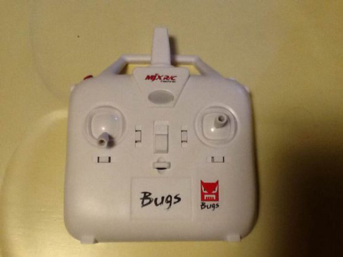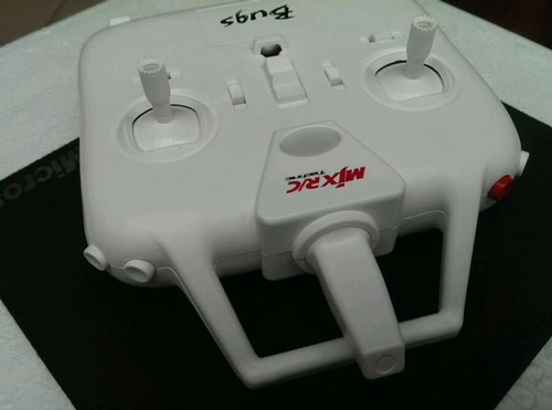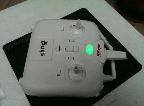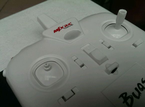 遥控器上方4个按钮,红色的是启动电机怠速和停止。再边上的是调速1—2档。右边的是翻滚和什么,没记住。没有标示字母和图标。即便是高手新拿到这遥控器,这按钮也摸不到门。哈。这不科学。