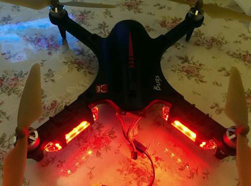机头灯很亮,可惜我是对尾飞行的时候多,夜航机尾漆黑一片,根本没有机身方向的参考。好在B3不管前后左右怎么飞行,机身偏转极少。我是准备自己装机尾灯了。
