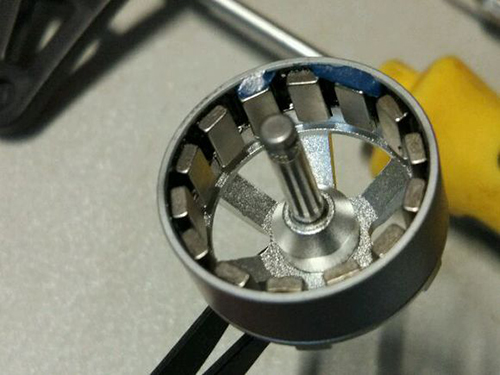 电机轴顶端有AB桨的分类,安装B桨的电机轴顶端是有凹槽的,而A桨的电机轴顶端是平整的,建议在B电机的凹槽里注入黑色标识,在桨帽上也分出黑色和白色