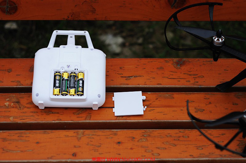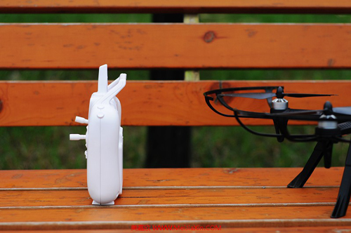 遥控器的大小适合,操纵方便,供电采用4节AAA电池,采用2.4GHz频段的遥控具有干扰小,反应灵敏,控制范围更广的特点,300至500米的距离,反正我感觉飞太高就看不清无人机的方向了。