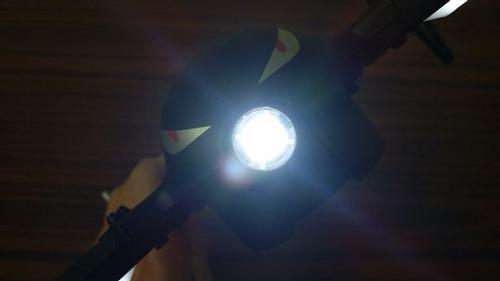 小怪兽的机臂灯,很宽大,亮度很高,夜晚的可视效果非常好。