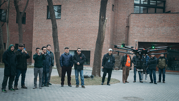 安全起飞观察:观察周围人群保持安全距离,与助手确认可以安全起飞。