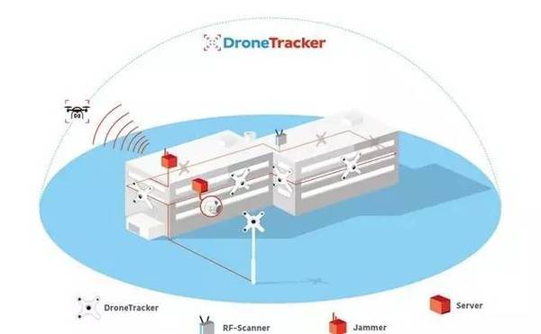 德国Dedrone GmbH公司研制的无人机探测系统“无人机跟踪者”(DroneTracker),主要由光电/红外传感器、声波和超声波设备及摄像机组成。该系统本身和数据处理系统可用计算机或智能手机进行管理。系统通过自带设备可以连接到建筑物的外墙或特殊站位上,对空域进行高效监视。当非法无人机侵入安全空域时,无人机位置会在数字地图上实时显示,视频证据会被自动保存,同时,警报会立即触发,安保人员可以立即采取行动。2016年8月,“无人机跟踪者”2.0版正式推出,新版本对无线网络传感器进行了升级,可以通过无线网信号探测无人机,不管这些无线网信号来自于控制无人机的智能手机,还是向地面人员传输视频信号的机载摄像机,甚至连发射装置的物理地址(MAC)都能够被新的传感器读出。